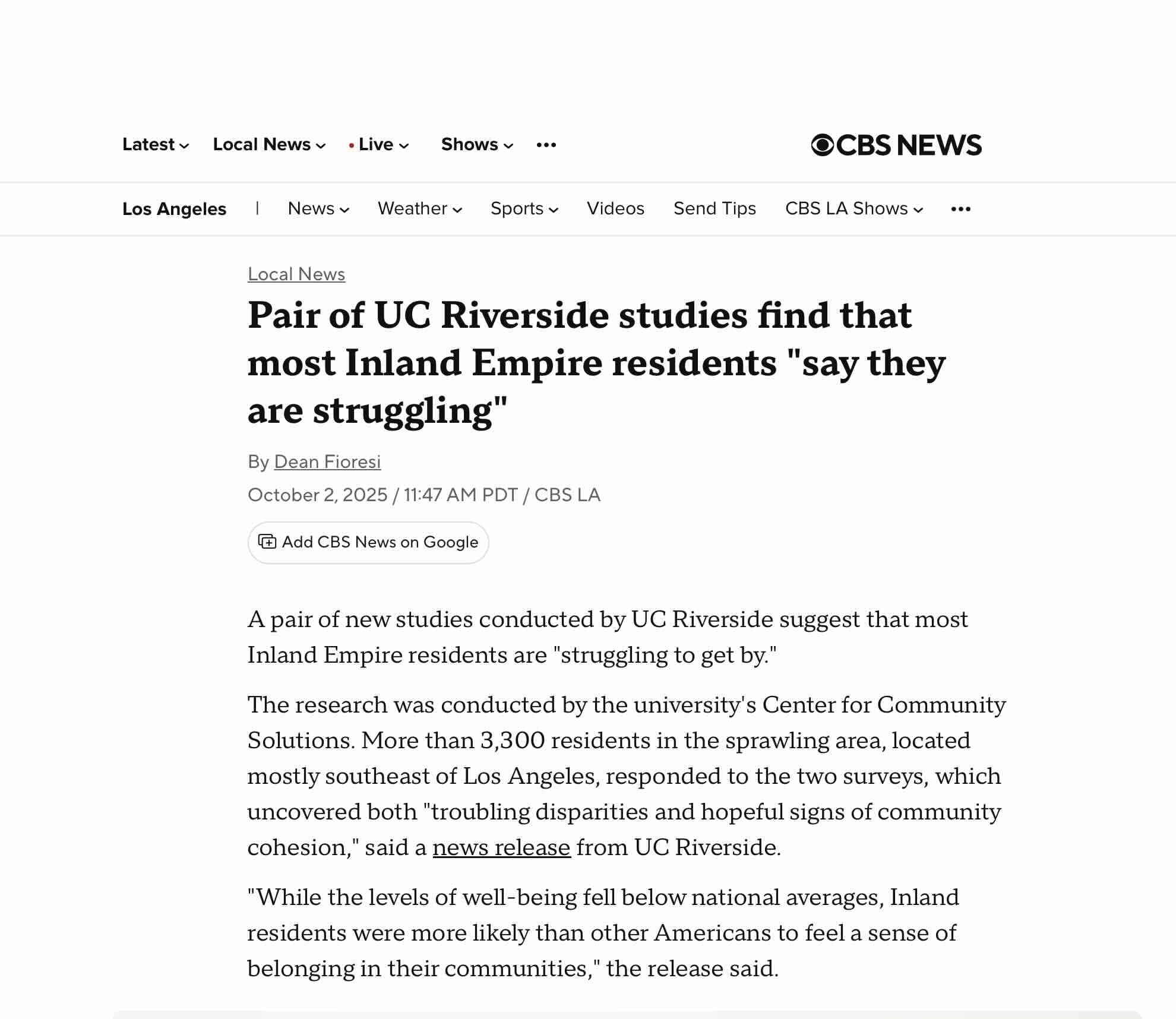Pair of UC Riverside Studies Find That Most Inland Empire Residents Say They Are Struggling
