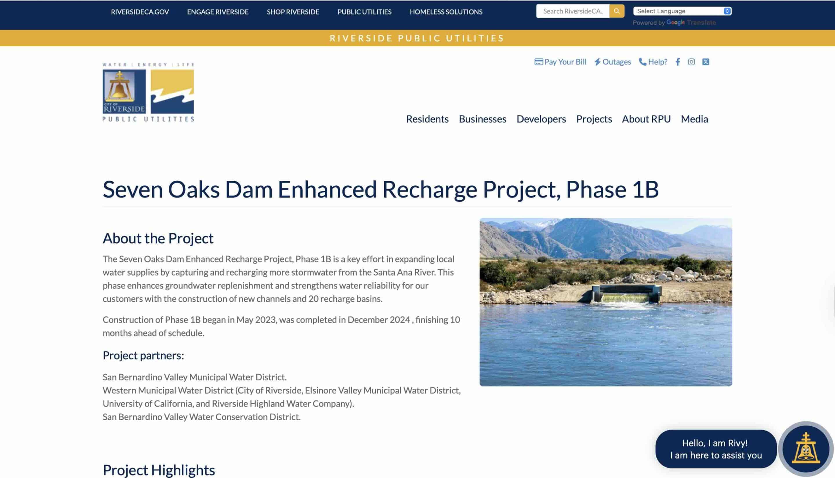 This resource is about the completion of the Seven Oaks Dam Enhanced Recharge Project Phase 1B, which expands local water supplies and improves drought resilience by constructing new recharge basins and infrastructure to increase groundwater replenishment from the Santa Ana River.